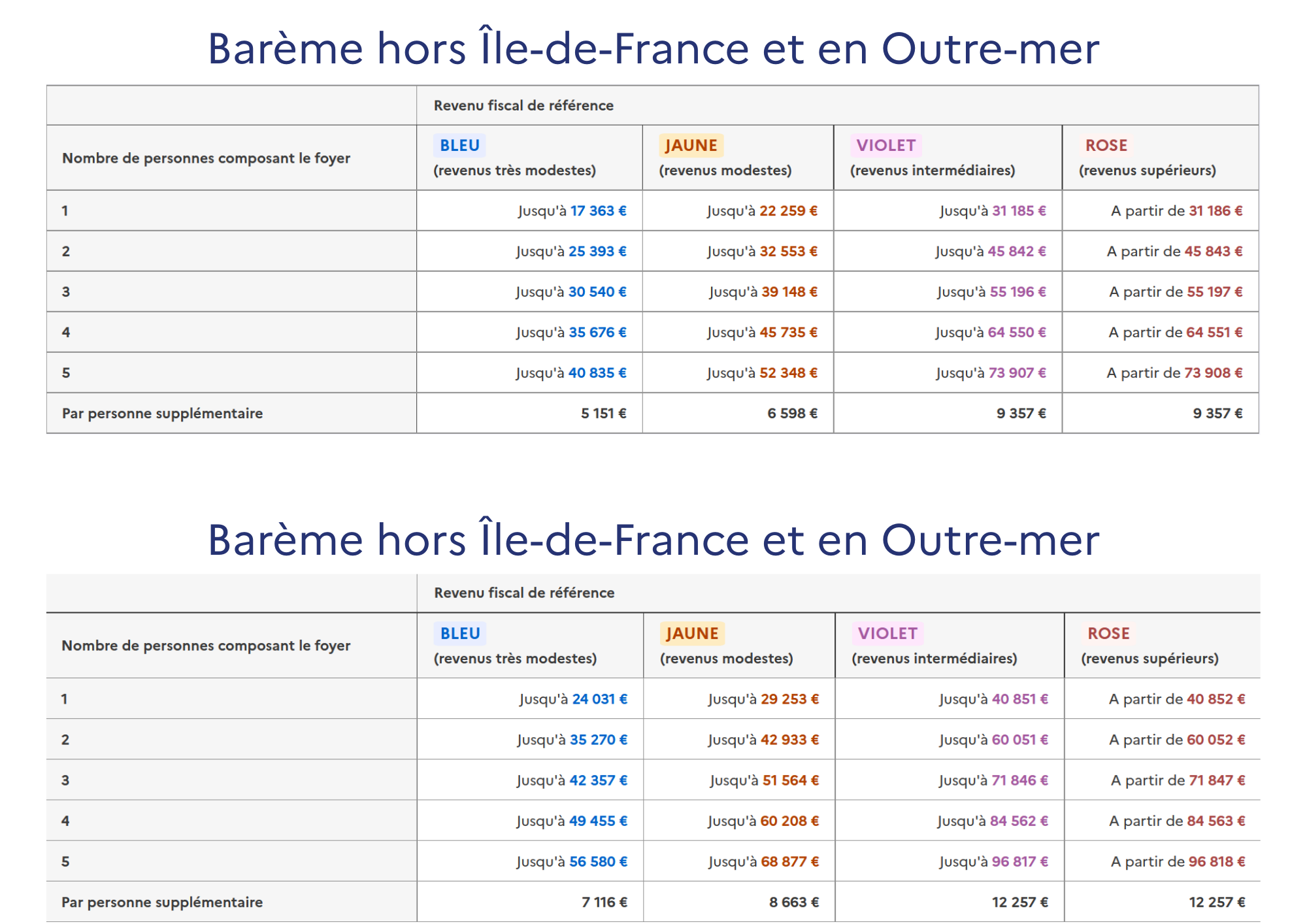 Pour vous situez en fonction de vos revenus sur les tableaux suivants :